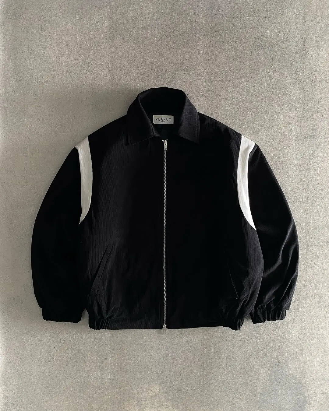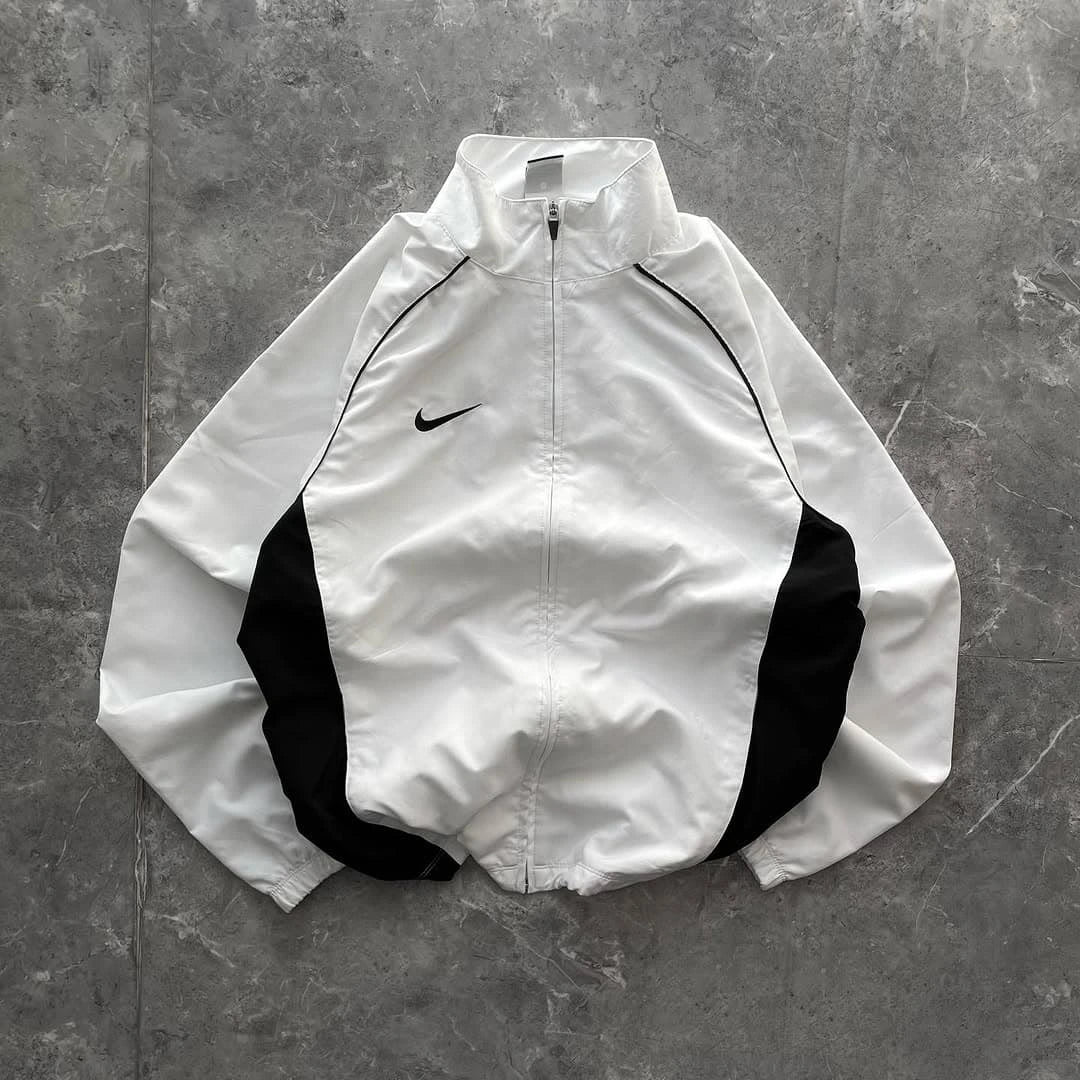 Stay sharp and effortless with this premium white athletic windbreaker featuring sleek black side panels. Designed for a clean street-style looks