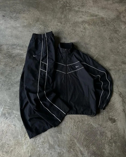 all-black Nike windbreaker set