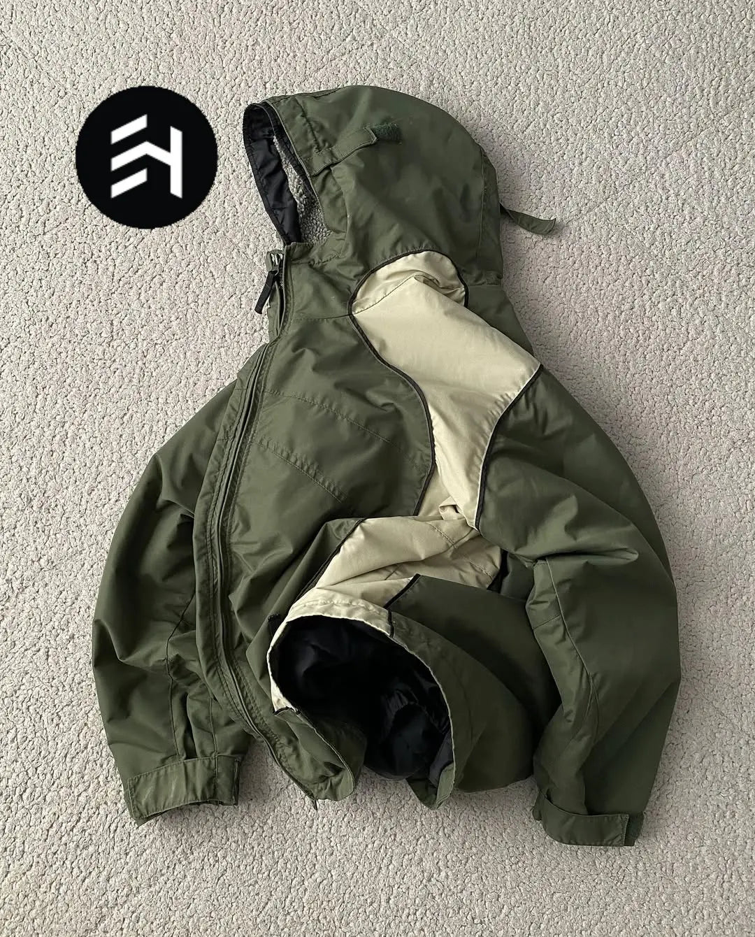 Colorway: Green/Olive and Beige/Khaki color-block design.